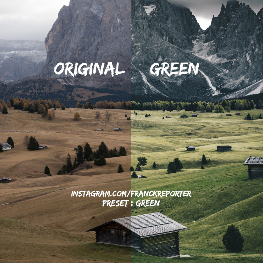 - 1 high quality preset for Adobe Lightroom to reproduce green folk tones at normal exposure from a dry autumn scene.